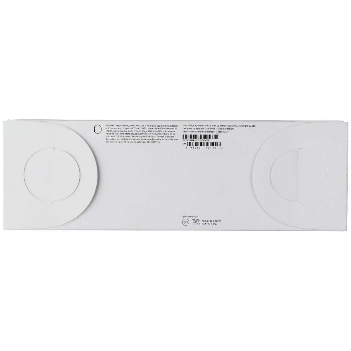 Apple Watch SE (2nd Gen) (GPS + Cellular) 44mm Midnight Aluminum Case with Midnight Sport Loop. Model: A2727.