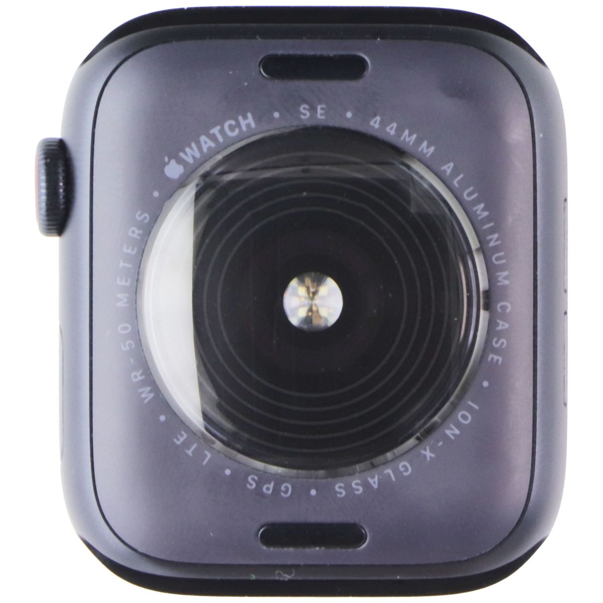 The Apple Watch SE (2nd Gen) 44mm Smartwatch. Model: A2727. GPS + Cellular version. Midnight Aluminum with Ink Sport Band.