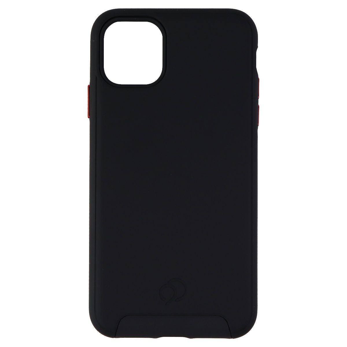 The Nimbus9 Cirrus 2 Series Hardshell Case for Apple iPhone 11 Pro Max Smartphones. Matte Black case, customizable with red and black buttons.