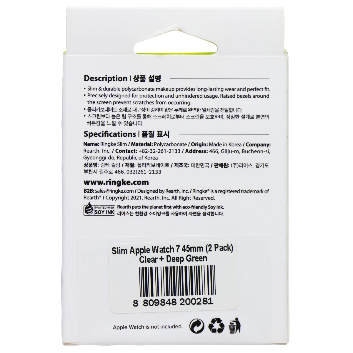 The Ringke Slim Case for Apple Watch 7 (45mm) Smartwatches. Deep Green and Clear Versions. 2 Pack.