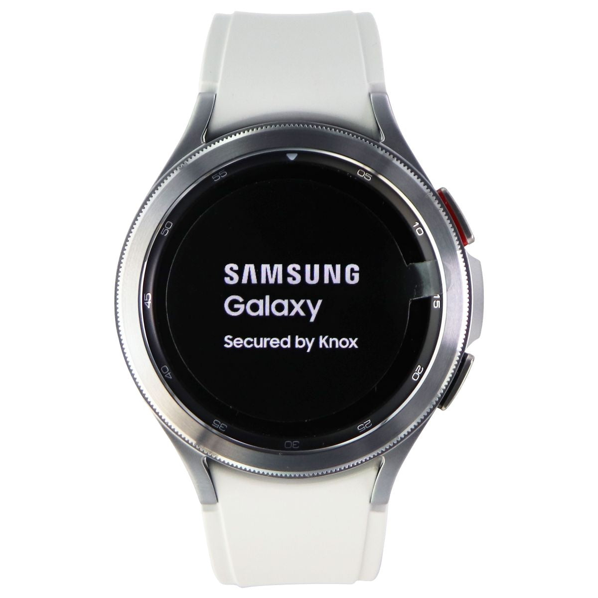 Samsung Galaxy Watch4 Classic Smartwatch, Model: (SM-R895U). Bluetooth / Wi-Fi + 4G LTE version. 46mm Silver Stainless Steel Case with White Ridge Band (M/L, Medium/Large Size (Strap).