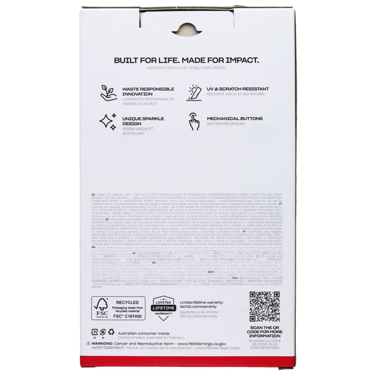 - Waste Responsible Innovation: Made with Bio-Spice™ technology, an additive that helps the plastic case break down more quickly in landfill environments once disposed of.
