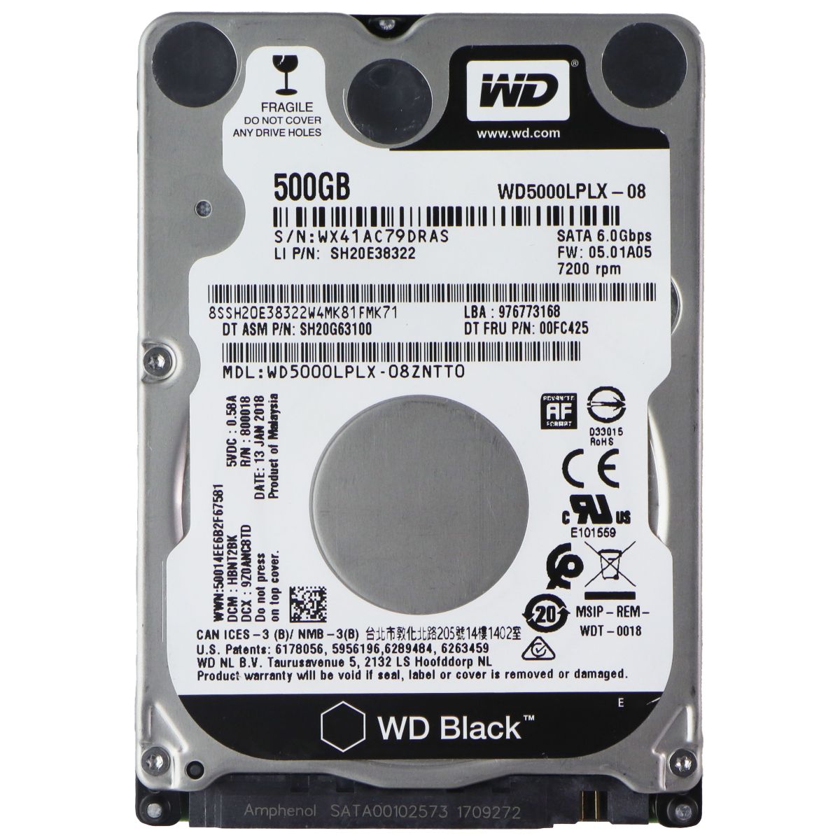 Western Digital WD Black 2.5-inch Hard Drive - 500GB SATA III (WD5000LPLX)