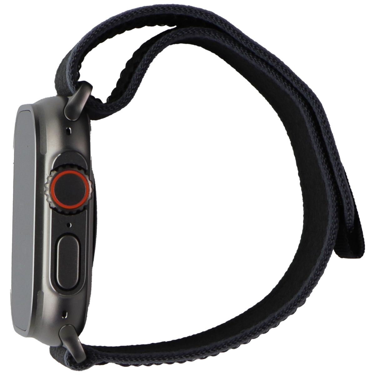 The Apple Watch Ultra 2 (GPS + Cellular LTE) Smartwatch. Model: A2986. 49mm Titanium Case with Blue/Black Trail Loop (M/L, Medium/Large Band Size).