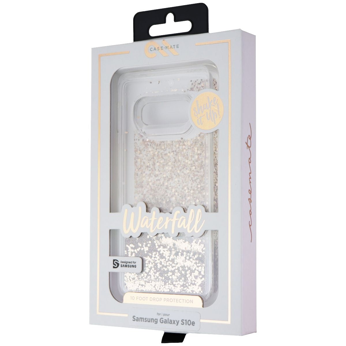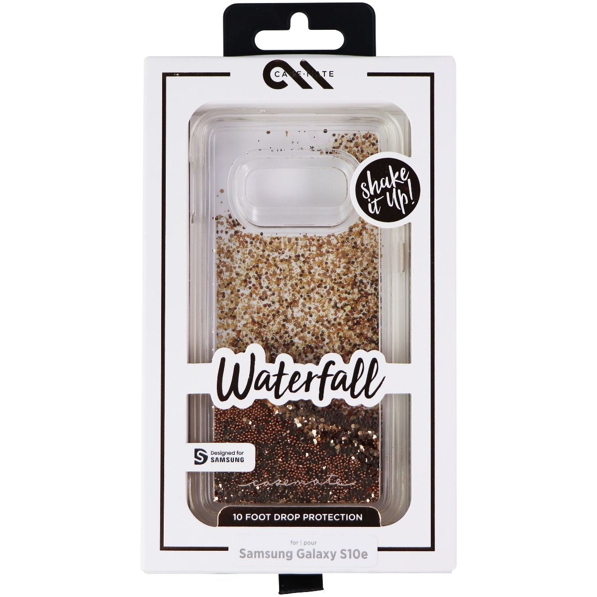 The Case-Mate Waterfall Series Liquid Glitter Case for Galaxy S10e Smartphones. Clear shell with Gold Glitter.
