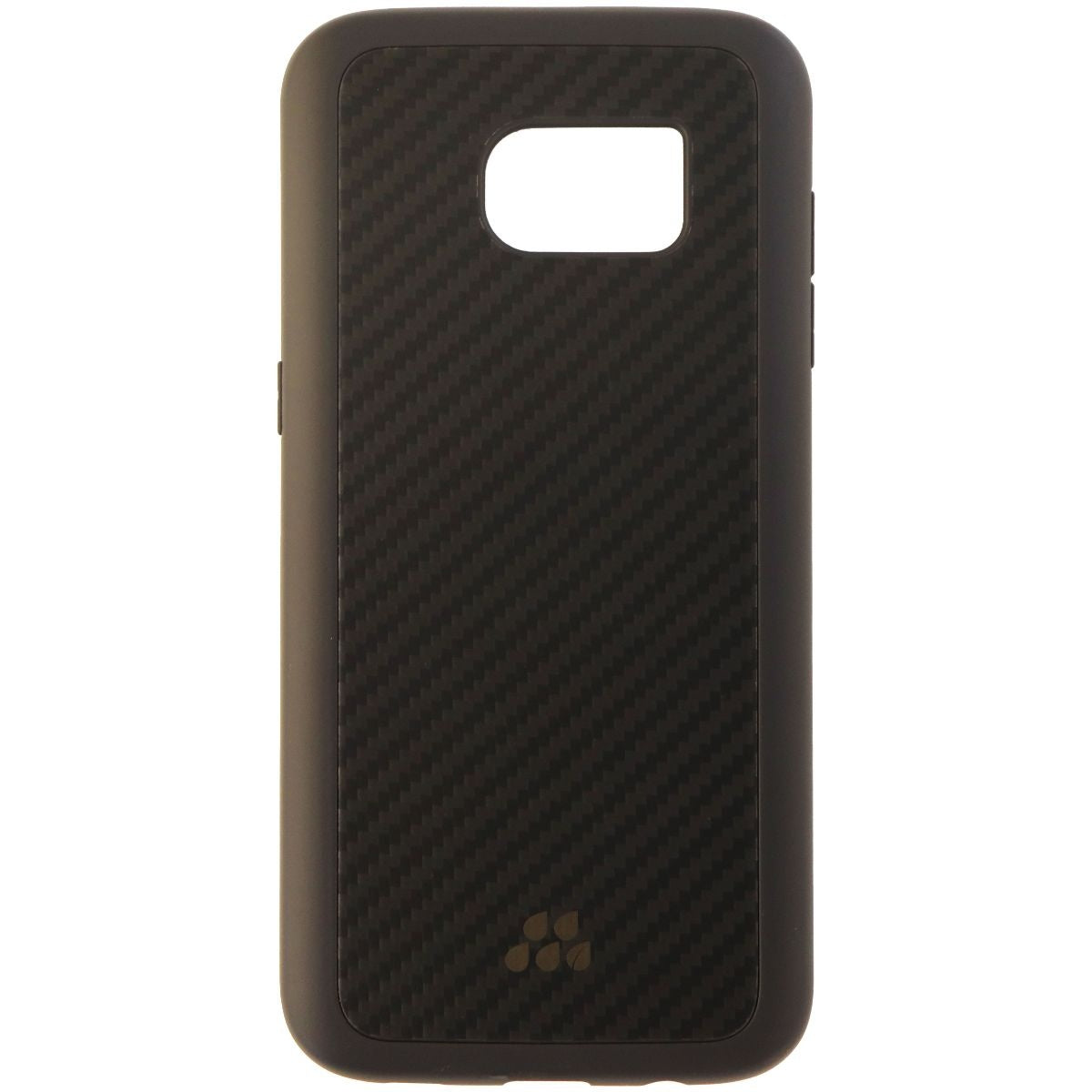 Evutec products, The Karbon SI Lite Series Slim Hybrid Case for Samsung Galaxy S7 Edge. Black version with solid black frame and carbon like design across the back shell.