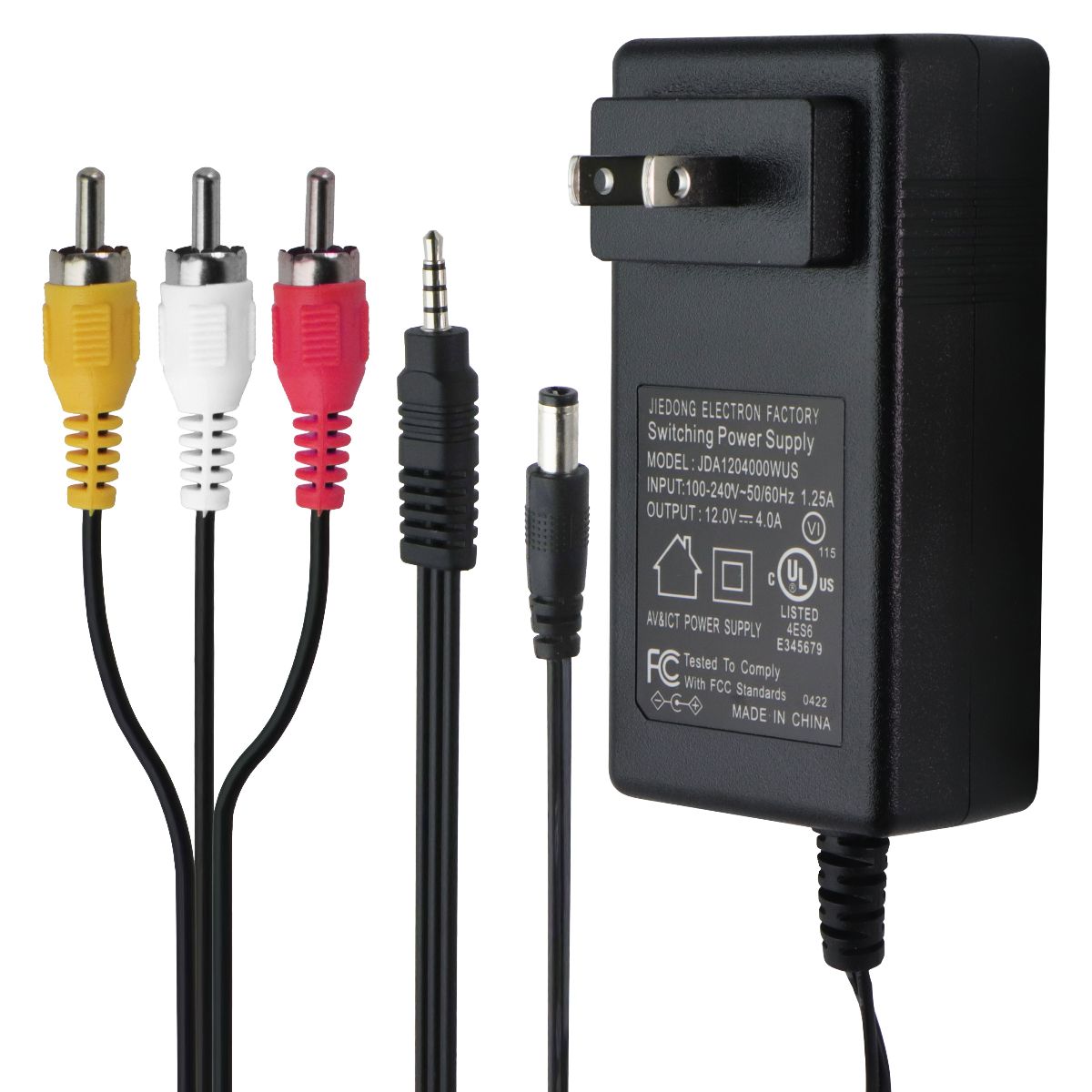 - 3.5mm to 3 x RCA audio/video cable and AC/DC power cable included
