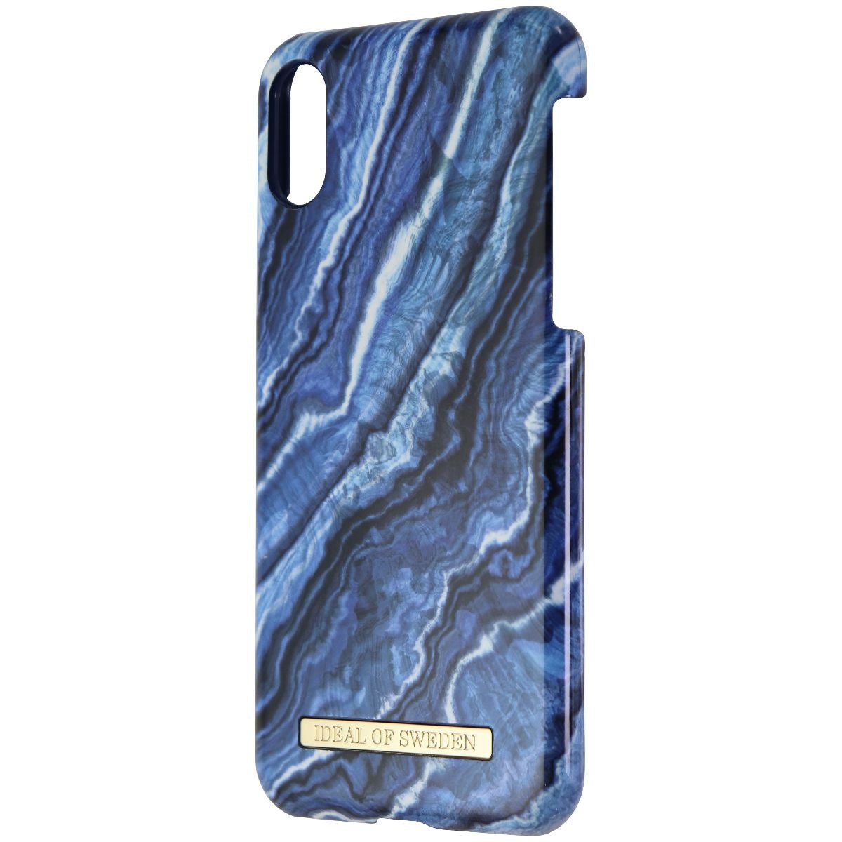 iDeal of Sweden Hard Case for Apple iPhone Xs and iPhone X Smartphones. Indigo Swirl shell with Gold accents.