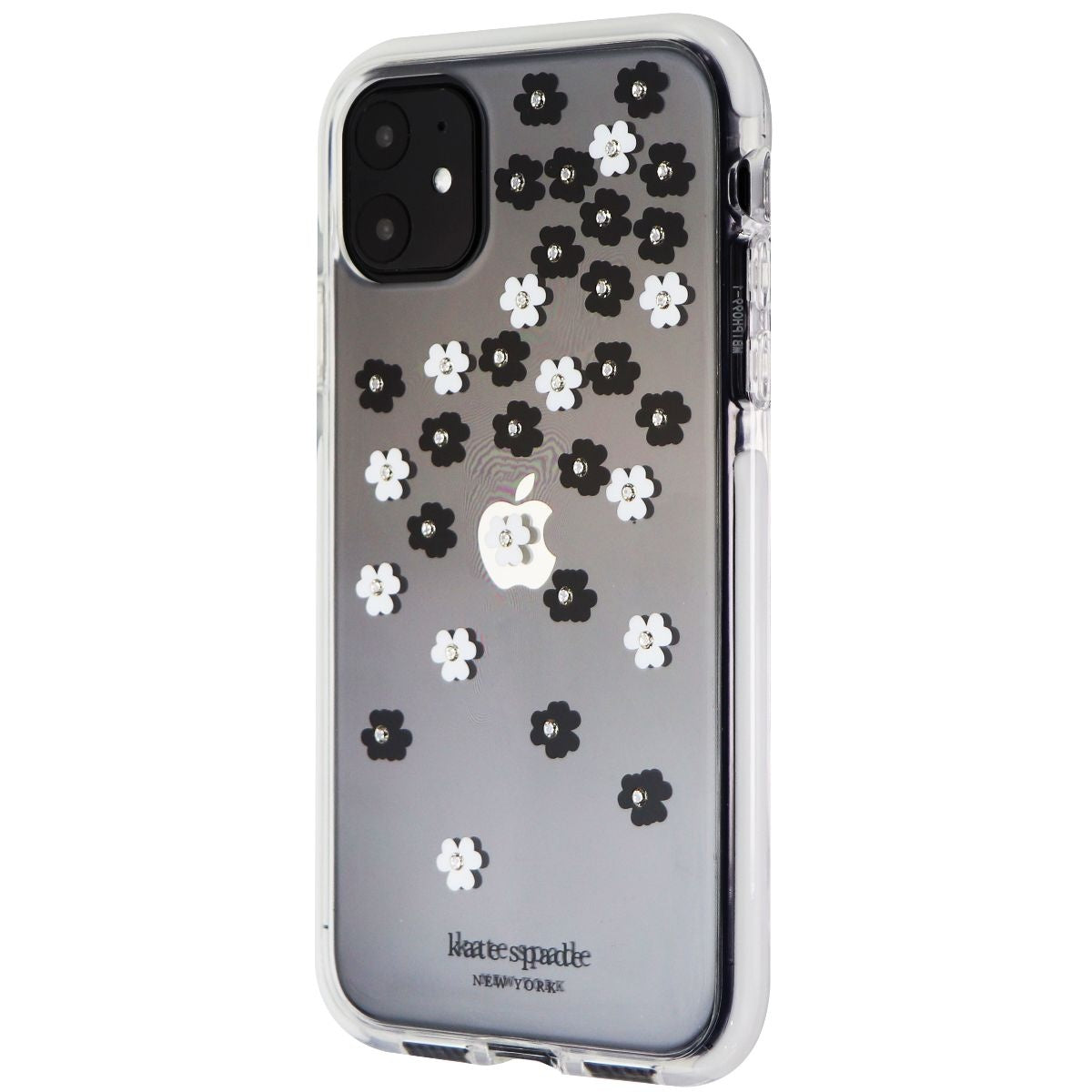 Kate Spade New York Defensive Hardshell Case for iPhone 11 (6.1-inch). Scattered Black and White Flowers with gem stone centers.
