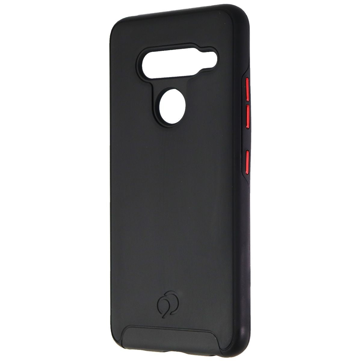 From Nimbus9, The Cirrus 2 Series Dual Layer Case for LG V40 ThinQ Smartphones. Matte Black version with metallic red buttons.