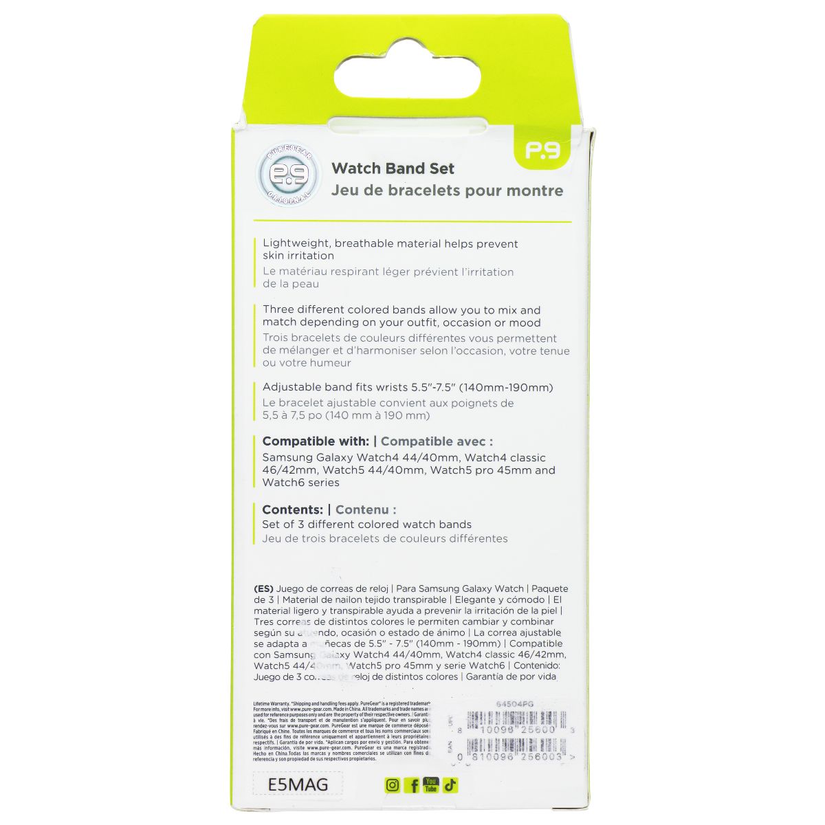 The PureGear 3 Pack Nylon & Velcro Watch Band Set for the Samsung Galaxy Watch 5/6.