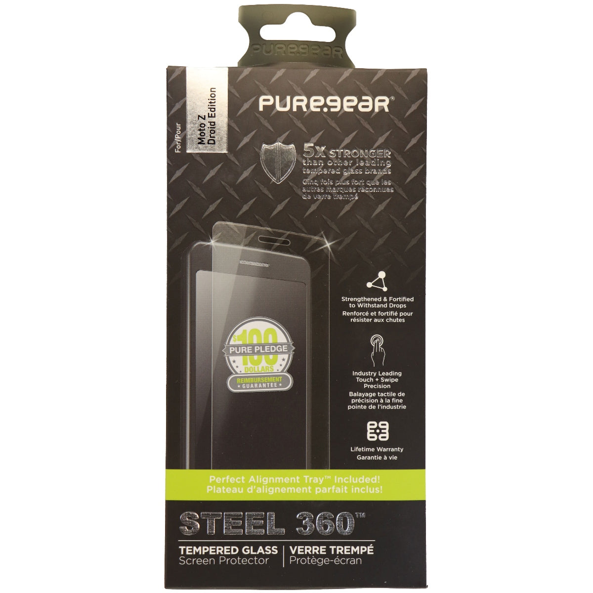 PureGear Steel 360 Tempered Glass Screen Protector compatible with the Motorola Moto Z Droid.