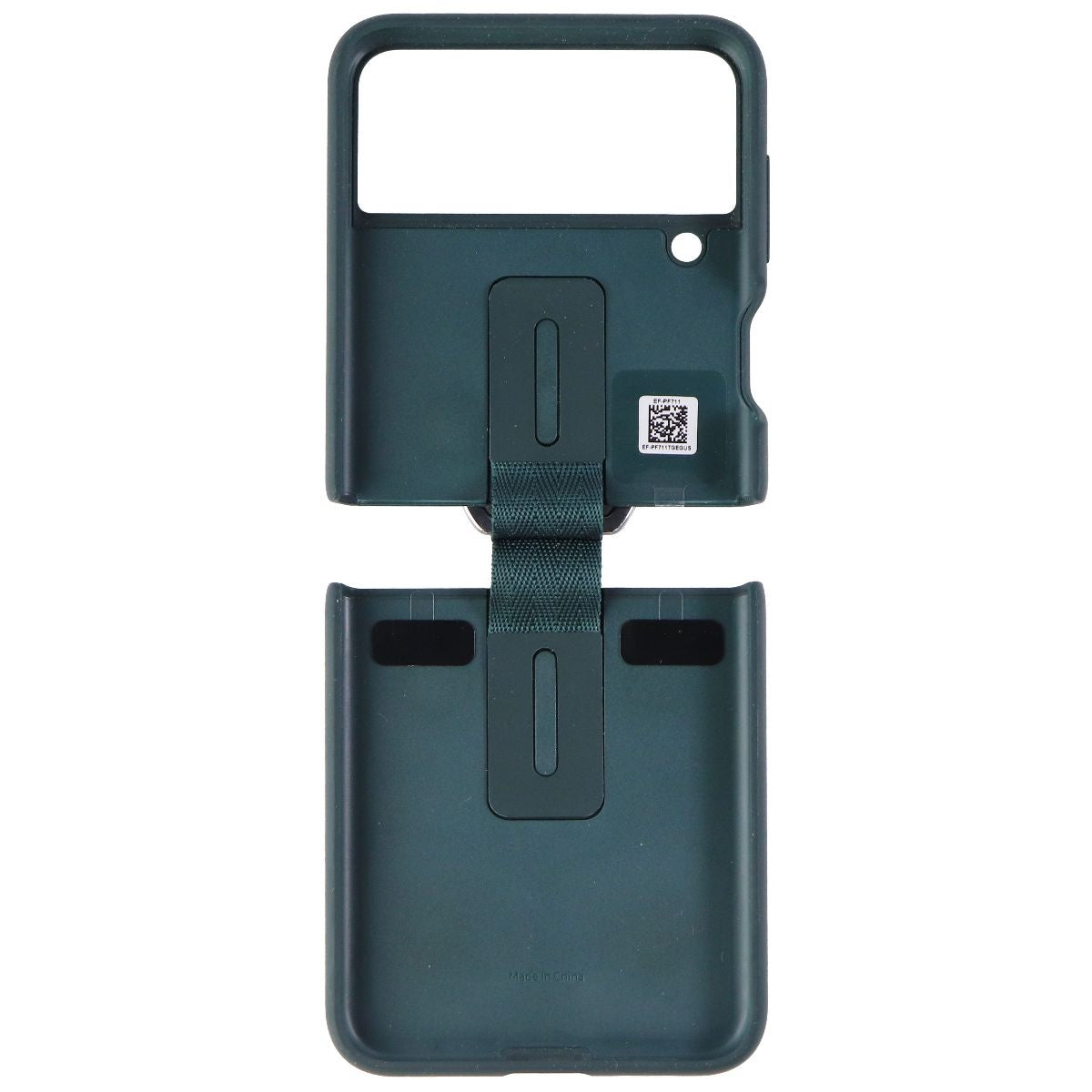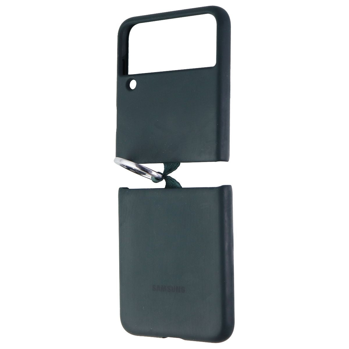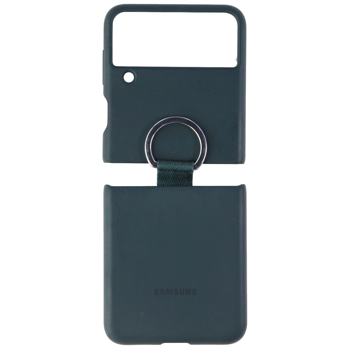 The Samsung Silicone Protective Cover with Ring for Galaxy Z Flip3 5G Smartphones. Green version.