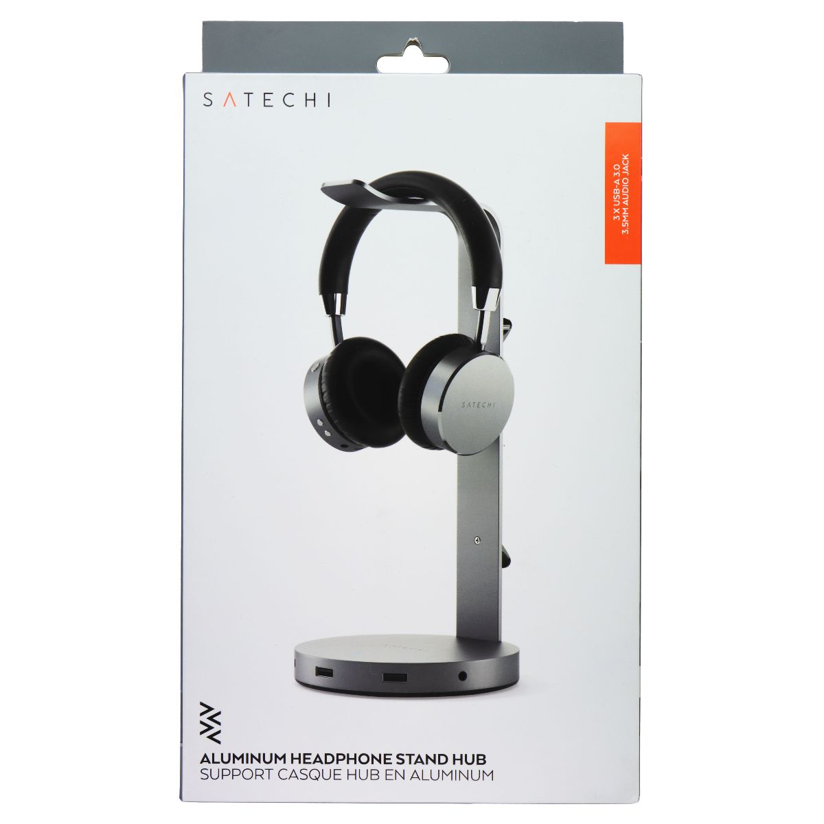 SATECHI Aluminum Headphone Stand Hub with 3 USB 3.0 Ports & 3.5mm. Space Gray version.