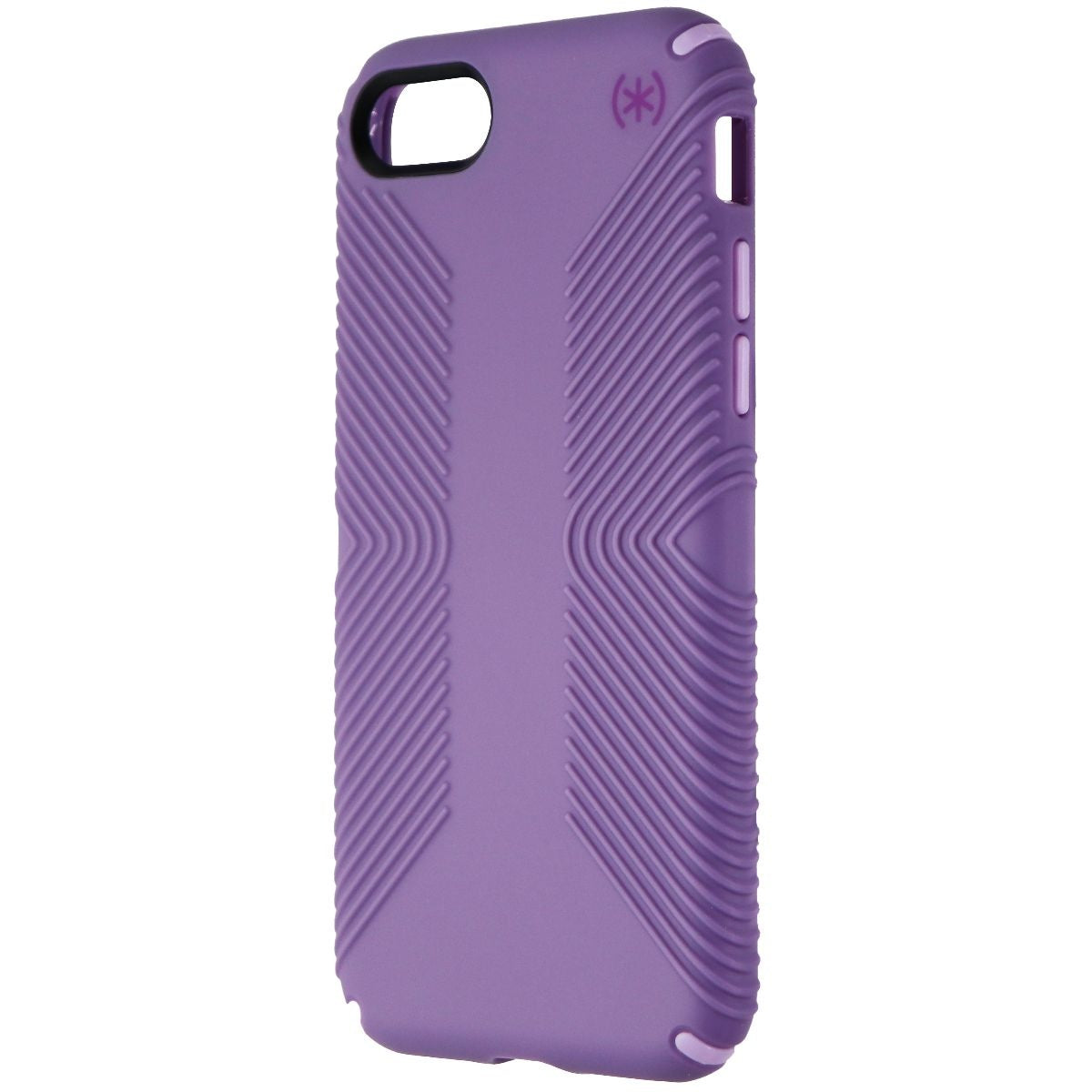 The Speck Presidio2 Grip Series Hybrid Case for Apple iPhone SE (2nd Gen), iPhone 8, and iPhone 7 Smartphones. Marabou Purple, Concord Purple, and Plum Purple combo color design.