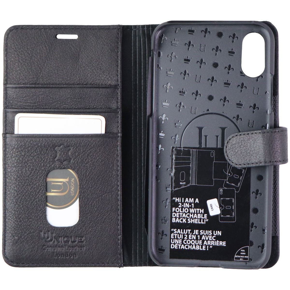 Unique London Genuine Leather 2 in 1 Folio for Apple iPhone Xs/X - Black